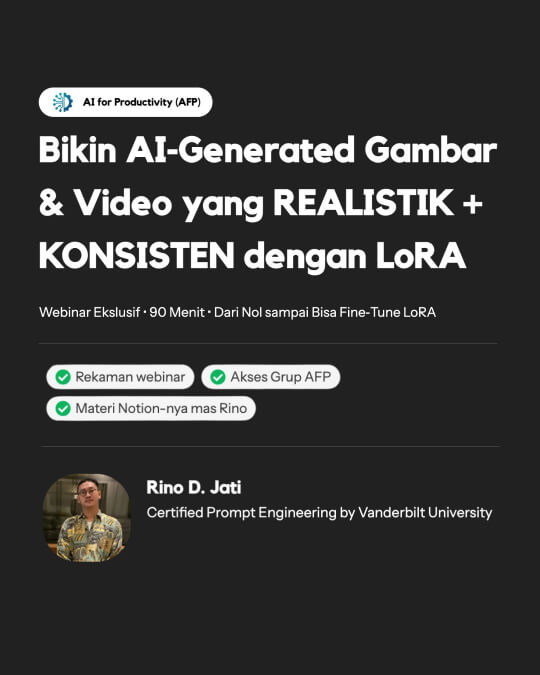 Konten AI-mu masih sering ganti-ganti muka, warna, atau gaya tiap frame? Webinar ini ajarin kamu fine-tuning dengan LoRA — biar hasil AI jadi realistis, stabil, dan siap jual. Cocok untuk kreator, marketer, atau siapa pun yang serius di konten AI.