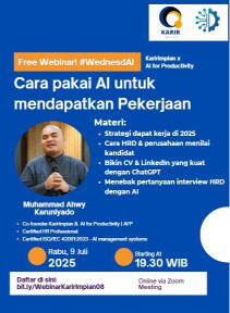 Webinar gratis bareng KarirImpian x AI For Productivity Pelajari cara pakai AI buat bikin CV, persiapan interview, dan menarik perhatian HRD di 2025. Daftar sekarang – kuota terbatas!